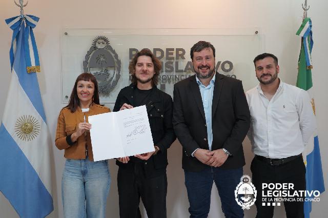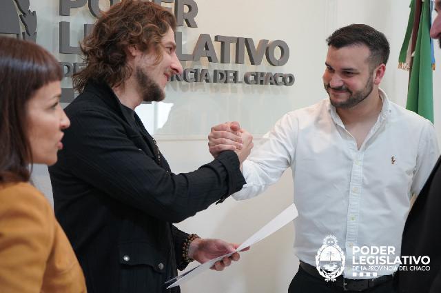 En la Sala de Labor Magno López de la Cámara de Diputados, a través de la Resolución 388/2025 se realizó un reconocimiento al cantautor chaqueño Maxi Pachecoy, en virtud de su nombramiento como embajador para la paz, efectuado por la Fundación para la Paz Internacional, conocida por las siglas UPF (Universal Peace Federation).